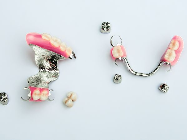 Las prótesis dentales removibles se sostienen en su lugar mediante ganchos que se adhieren a los dientes restantes o a la encía. Los ganchos pueden estar hechos de metal o plástico.